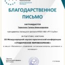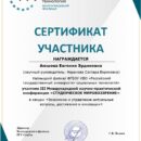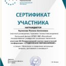 сертификат участника – Куликова П., секция «Экономика и управление: актуальные вопросы, достижения и инновации», руководитель Тарасенко Г.А.;