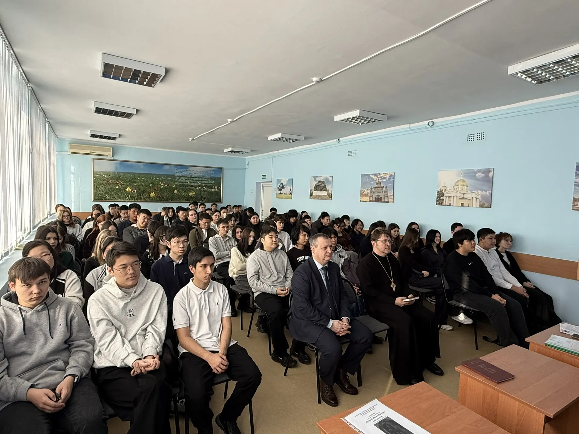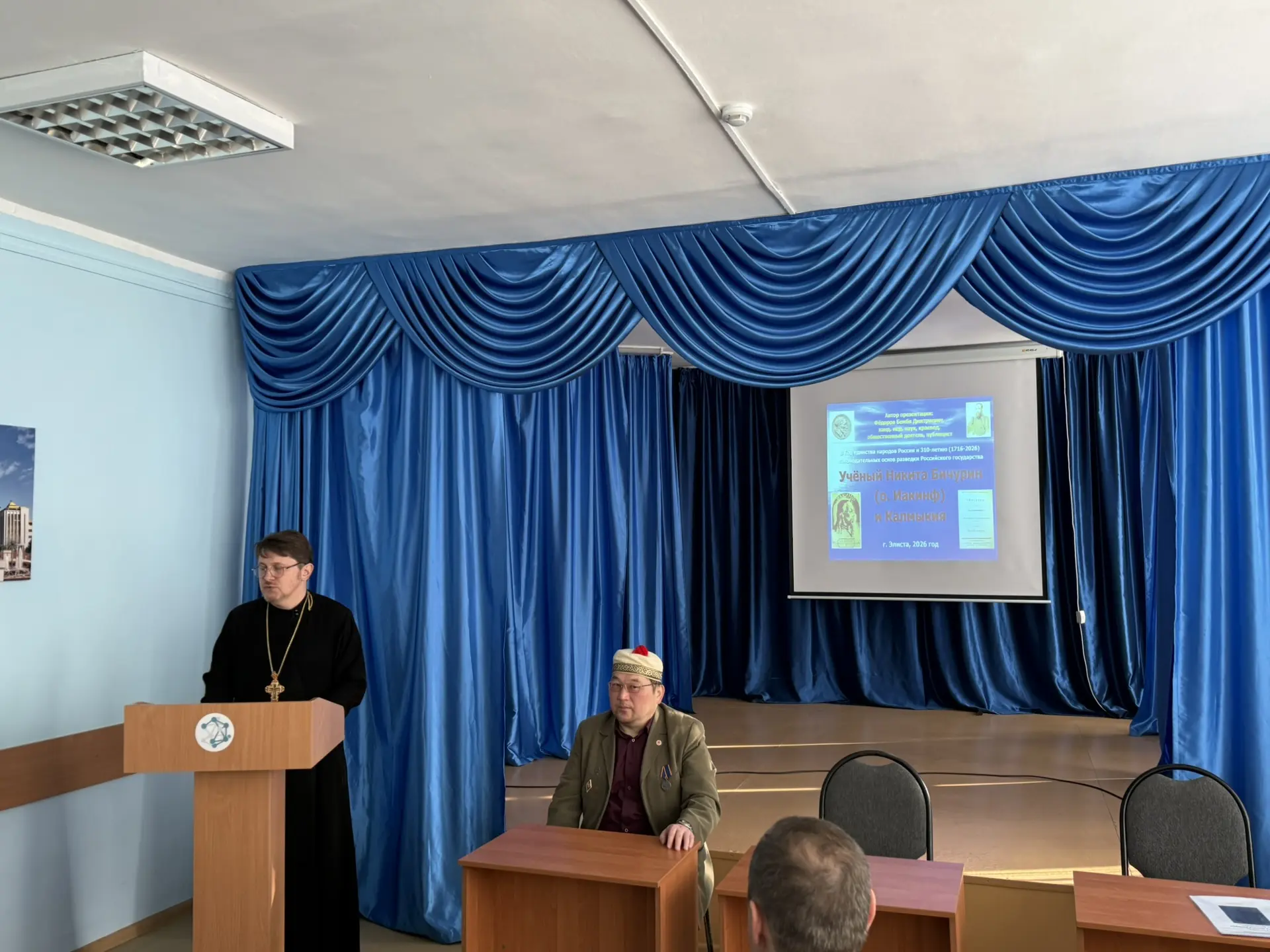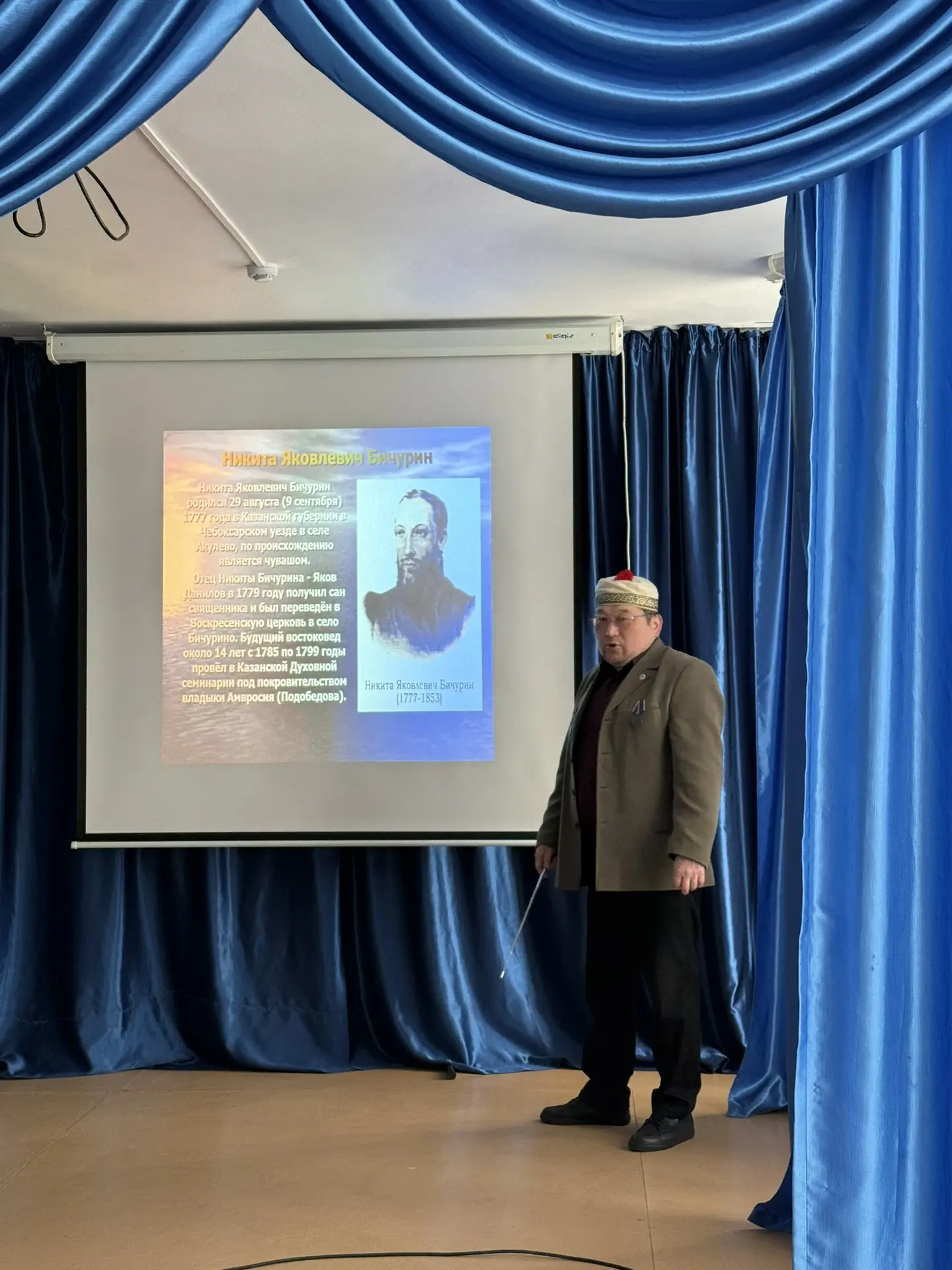 В рамках Года единства народов России 21 января 2026 года в КФ РГУ СоцТех состоялась лекция на тему «Учёный Никита Бичурин и Калмыкия». В ходе мероприятия краевед, кандидат медицинских наук. Б.Д. Фёдоров рассказал о жизни и деятельности, научном наследии учёного-востоковеда, одного из основоположников русского китаеведения, лингвиста, составившего первую научную грамматику китайского языка, этнографа и переводчика Н.Я. Бичурина. Протоиерей Элистинской и Калмыцкой епархии Зимовец Антон Владимирович рассказал о вкладе отца Иакинфа в развитие православной историографии. В завершение Бембя Фёдорович продемонстрировал известные научные труды ученого.