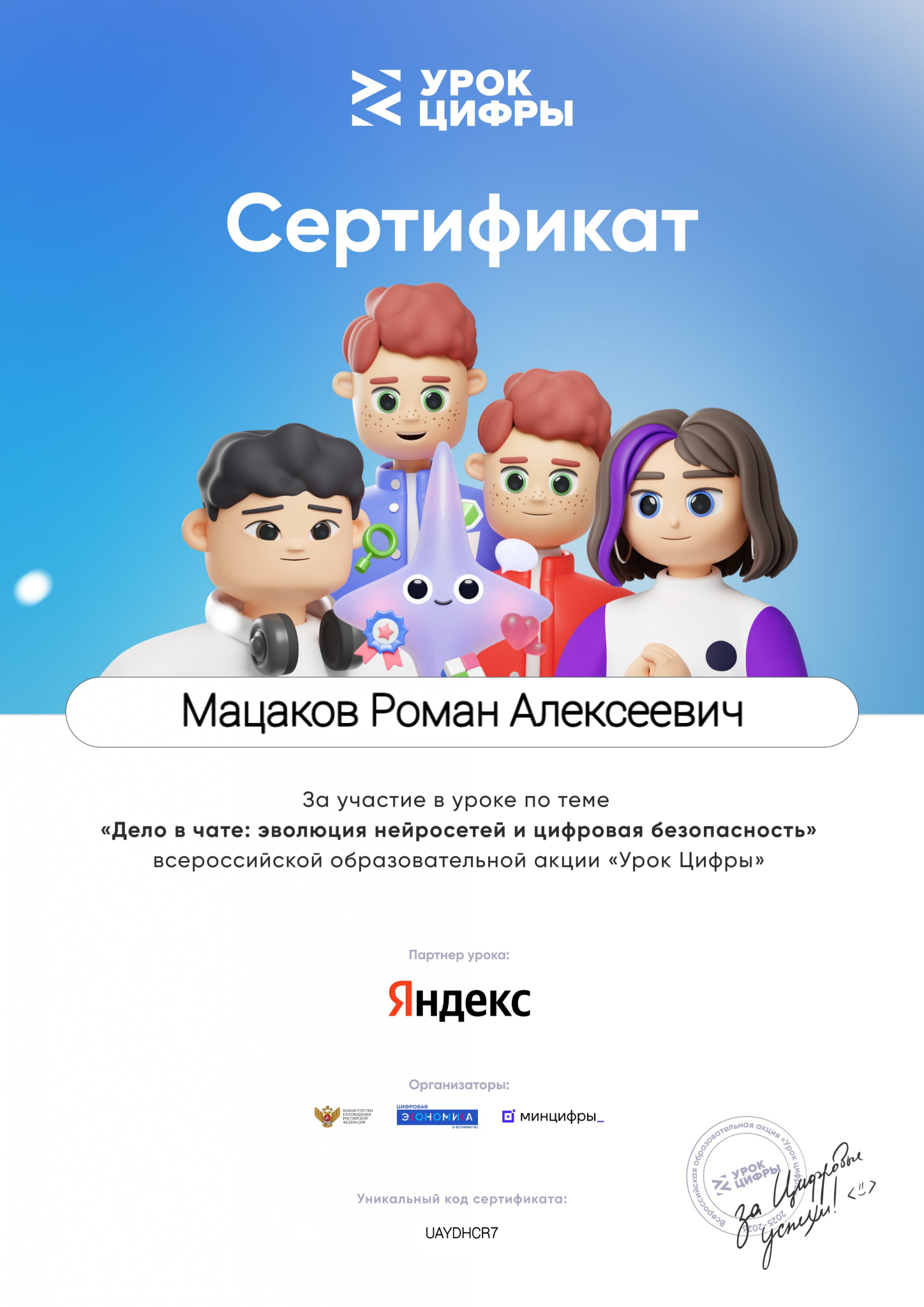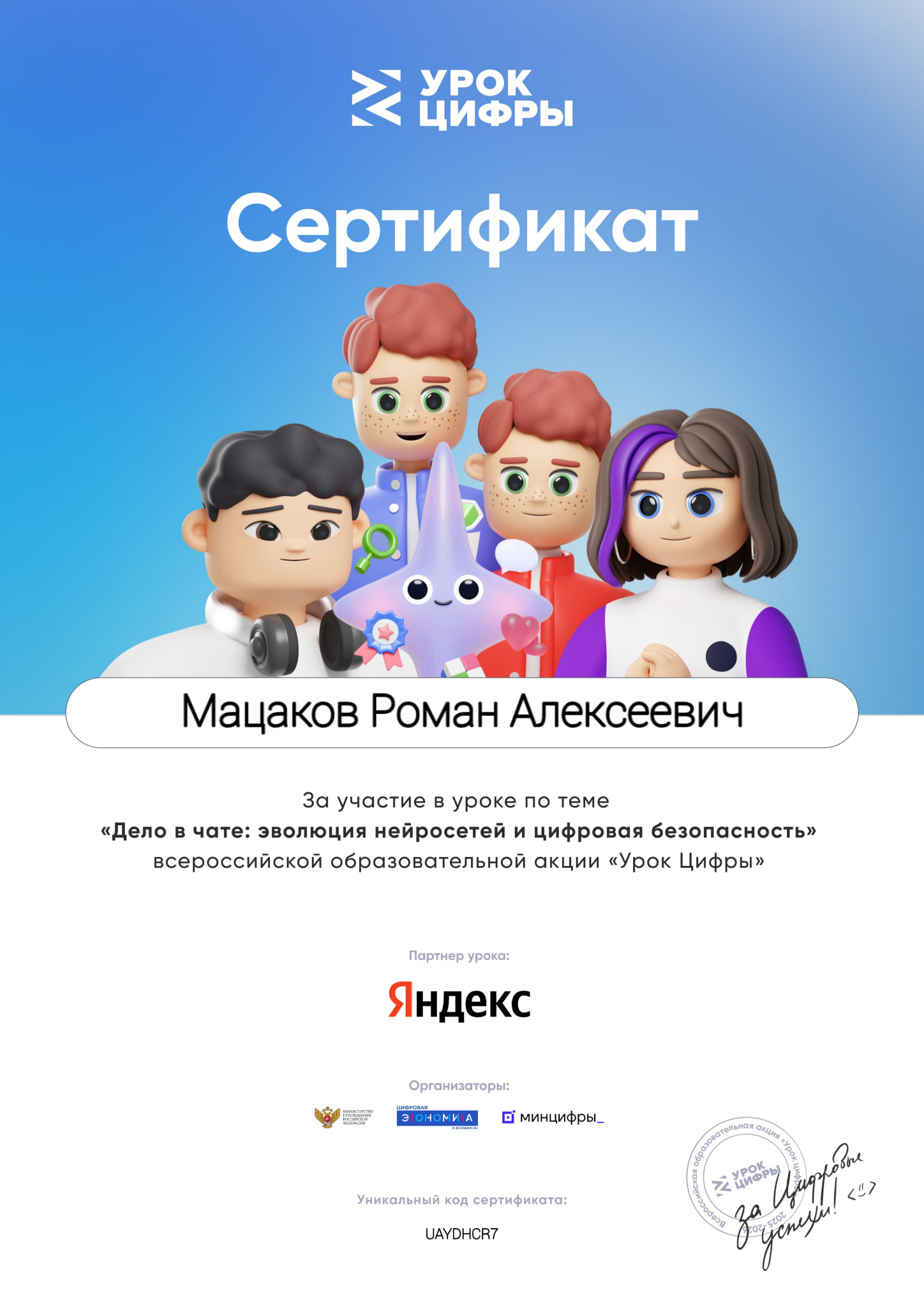 14 декабря 2025 года студенты I курса специальности 10.02.05 Обеспечение информационной безопасности автоматизированных систем (кл. рук. Мучкаева Б.Д.) приняли участие во Всероссийском образовательном проекте в сфере информационных технологий Урок цифры «Дело в чате: эволюция нейросетей и цифровая безопасность». Данный проект – это возможность получить знания от ведущих подготовленных экспертов Яндекса. «Урок цифры» стал для наших студентов не только возможностью узнать что — то новое, но и вдохновением для дальнейшего развития в области цифровых технологий. В ходе урока обучающиеся познакомились с технологиями, на основе которых работают ИИ-ассистенты. Студенты узнали, каким образом современные цифровые ассистенты помогают людям решать повседневные задачи и обеспечили себе прочные знания в области информационной безопасности. В рамках мероприятия наглядно показана практическая значимость и широкое применение ИИ в различных сферах человеческой деятельности. По завершении занятия все участники получили сертификаты, подтверждающие приобретённые знания.