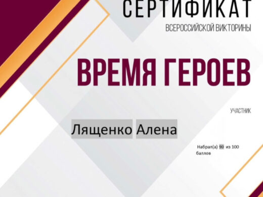 С 25 по 30 ноября 2023 года студенты КФ МГГЭУ — члены историко-патриотического клуба «Глобус» приняли участие во Всероссийской викторине «Время героев» в дистанционном формате. Цель викторины: актуализовать и расширить знаний молодежи о героях былых времён и героях нашего времени, развить познавательные и интеллектуальные способности студентов, их творческий потенциал, расширить кругозор. Вопросы посвящены разным сферам общественной деятельности: политике, истории, литературе, спорту, космонавтике, науке, географии, изобразительному искусству, и т.д.