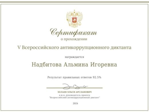В целях оценки уровня знаний граждан о коррупции и ее последствиях 03-04 декабря 2024 года студенты КФ РГУ СоцТех, в рамках Декады общих гуманитарных и профессиональных дисциплин и модулей, приняли участие во Всероссийском антикоррупционном диктанте. Участники ответили как на общие вопросы, направленные на проверку антикоррупционного законодательства, так и на практические ситуации, позволяющие оценить компетентность участника в сфере противодействия коррупции. Каждый, успешно прошедший диктант, получил именной сертификат.