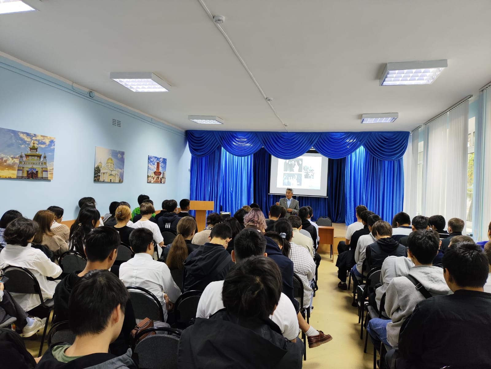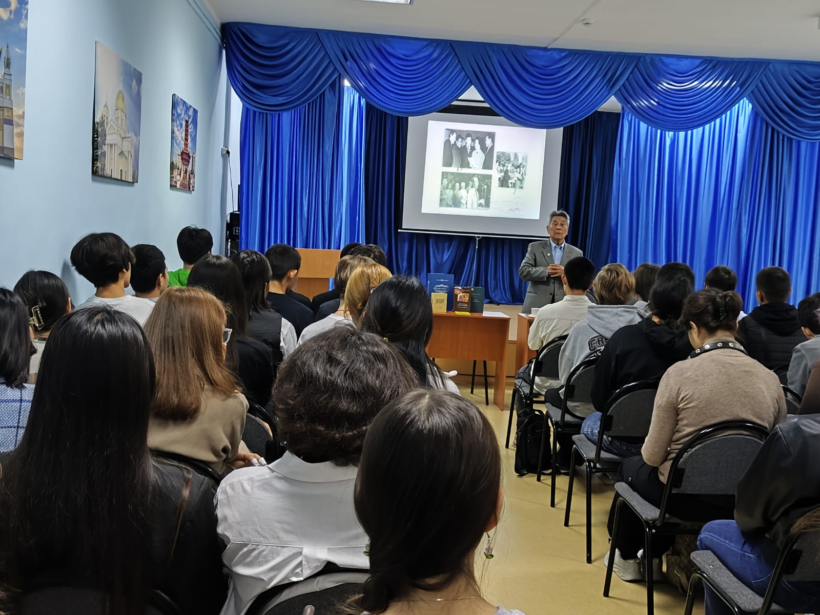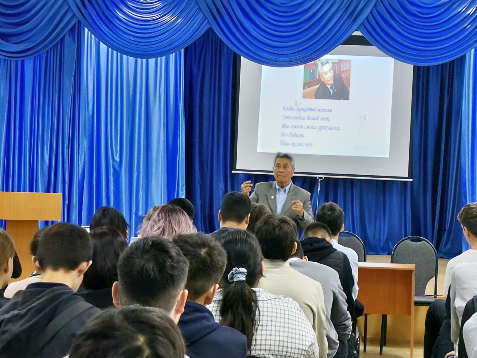 13 октября 2025 года  студенты КФ РГУ СоцТех встретились с народным поэтом Калмыкии, Заслуженным работником культуры Калмыкии и Российской Федерации Владимиром Дорджиевичем  Нуровым.