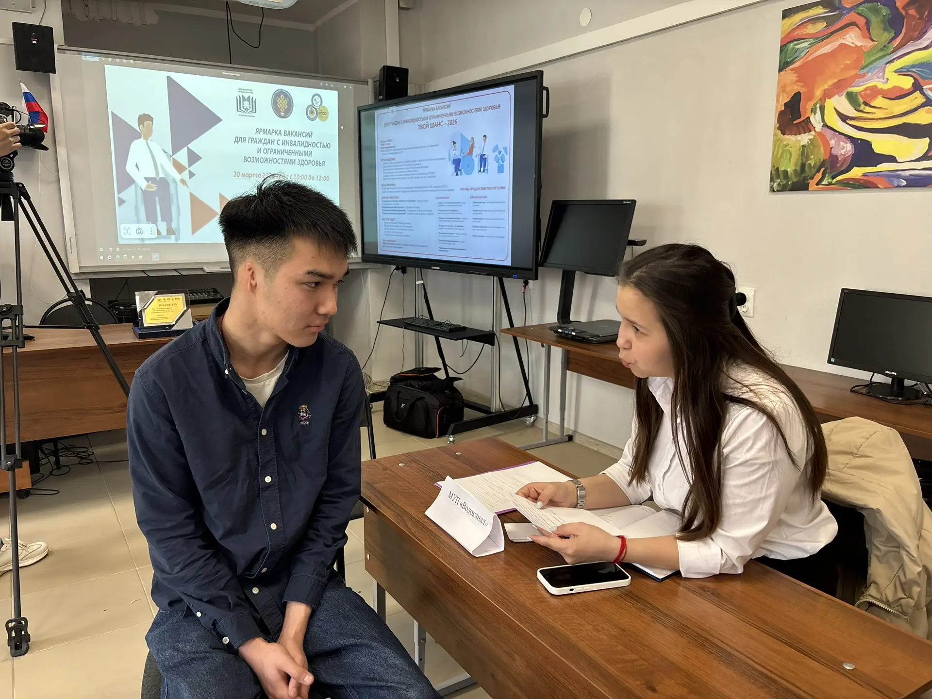 20 марта 2026 года студенты и сотрудники КФ РГУ СоцТех приняли участие в ярмарке вакансий рабочих и учебных мест в рамках IX регионального чемпионата по профессиональному мастерству среди инвалидов и лиц с ОВЗ «Абилимпикс» Республики Калмыкия на базе БПОУ РК «Элистинский педагогический колледж им. Х. Б. Канукова», организованной Министерством социального развития, труда и занятости Республики. Мероприятие направлено на содействие в трудоустройстве и социальной адаптации граждан с ограниченными возможностями здоровья. Будущие выпускники филиала имели возможность пройти предварительное собеседование с работодателями, заполнить анкеты соискателей и составить резюме, а также получить консультацию по вопросу трудоустройства от потенциальных работодателей республики.
