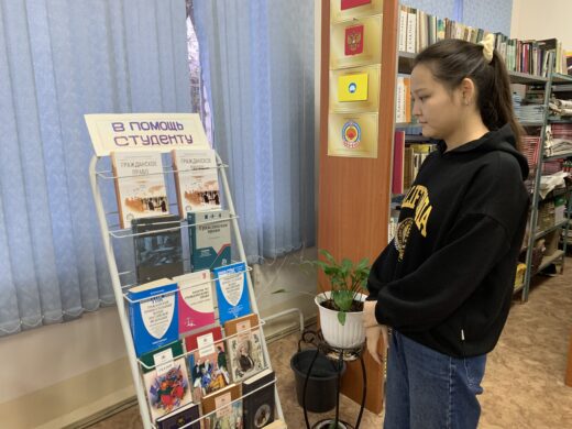 14 ноября 2023 года преподаватель Басанова Д.В. совместно с заведующей библиотекой Бевиновой И.В. провели занятие по выполнению курсовой работы по учебной дисциплине Гражданское право для студентов выпускной группы специальности Право и организация социального обеспечения. В ходе занятия Долорес Владимировна проинформировала о структуре, требованиях и специфики написания курсовой работы. Инга Владимировна подготовила выставку научной и учебной литературы по дисциплине, продемонстрировала студентам имеющие возможности доступа к пользованию электронными информационно-образовательными ресурсами из локальной сети МГГЭУ: ЭБС Юрайт, ЭБС Лань, ЭБ ZNANIUV.COM, НЭБ «КиберЛенинка», Российская национальная библиотека.