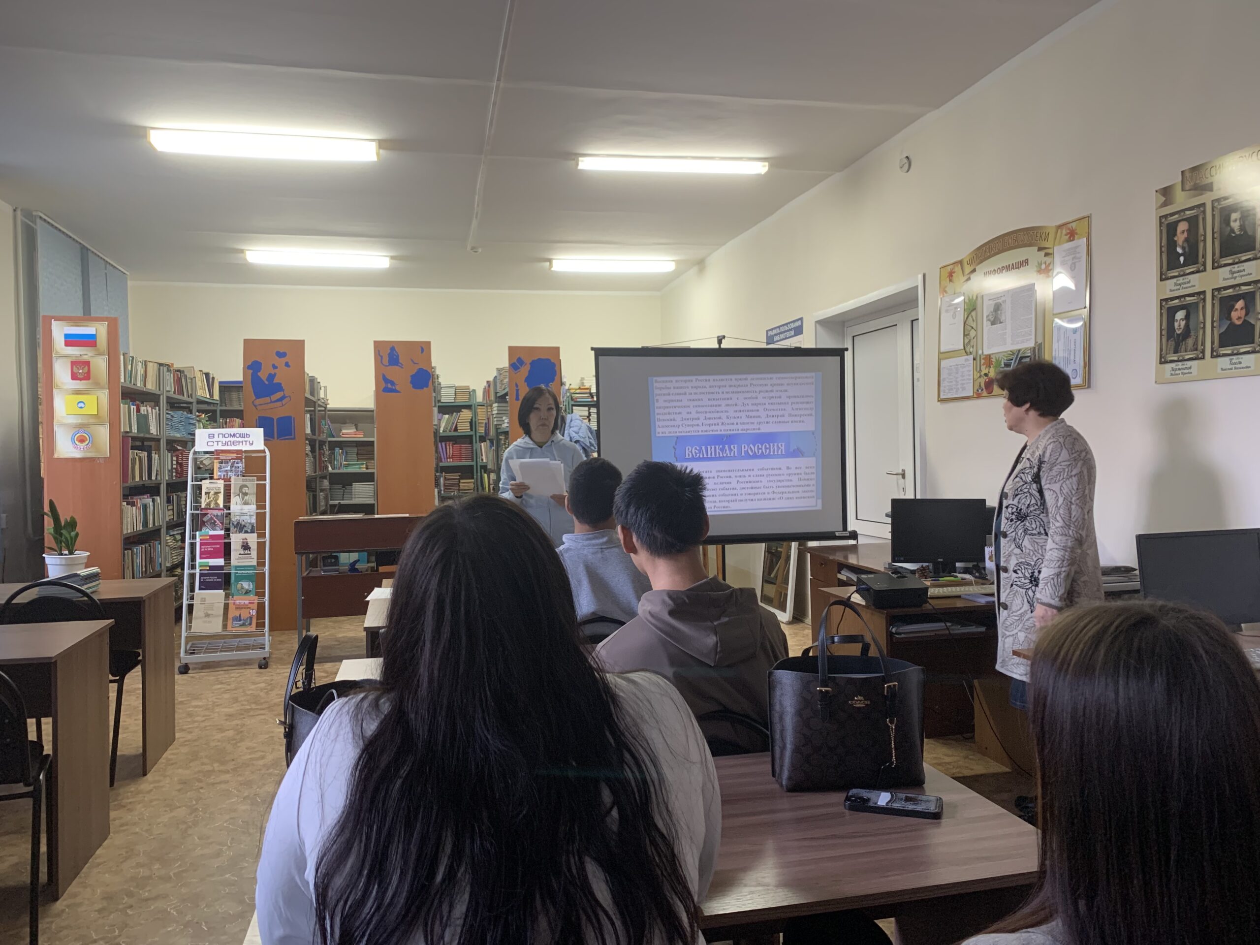 16 октября 2025 года преподаватель Басанова Д.В. совместно с заведующей библиотекой Бевиновой И.В. провели совместный урок в группе Ю-1Б по учебной дисциплине «Обществознание» по теме «Духовная культура». В ходе занятия Долорес Владимировна особое внимание уделила ключевым аспектам и способам сохранения исторической памяти. В целях сохранения исторической памяти, приобщения к культурным ценностям и формирования общественного мнения о прошлом Инга Владимировна подготовила презентацию, в ходе которой ознакомила обучающихся с историческим календарем России.
