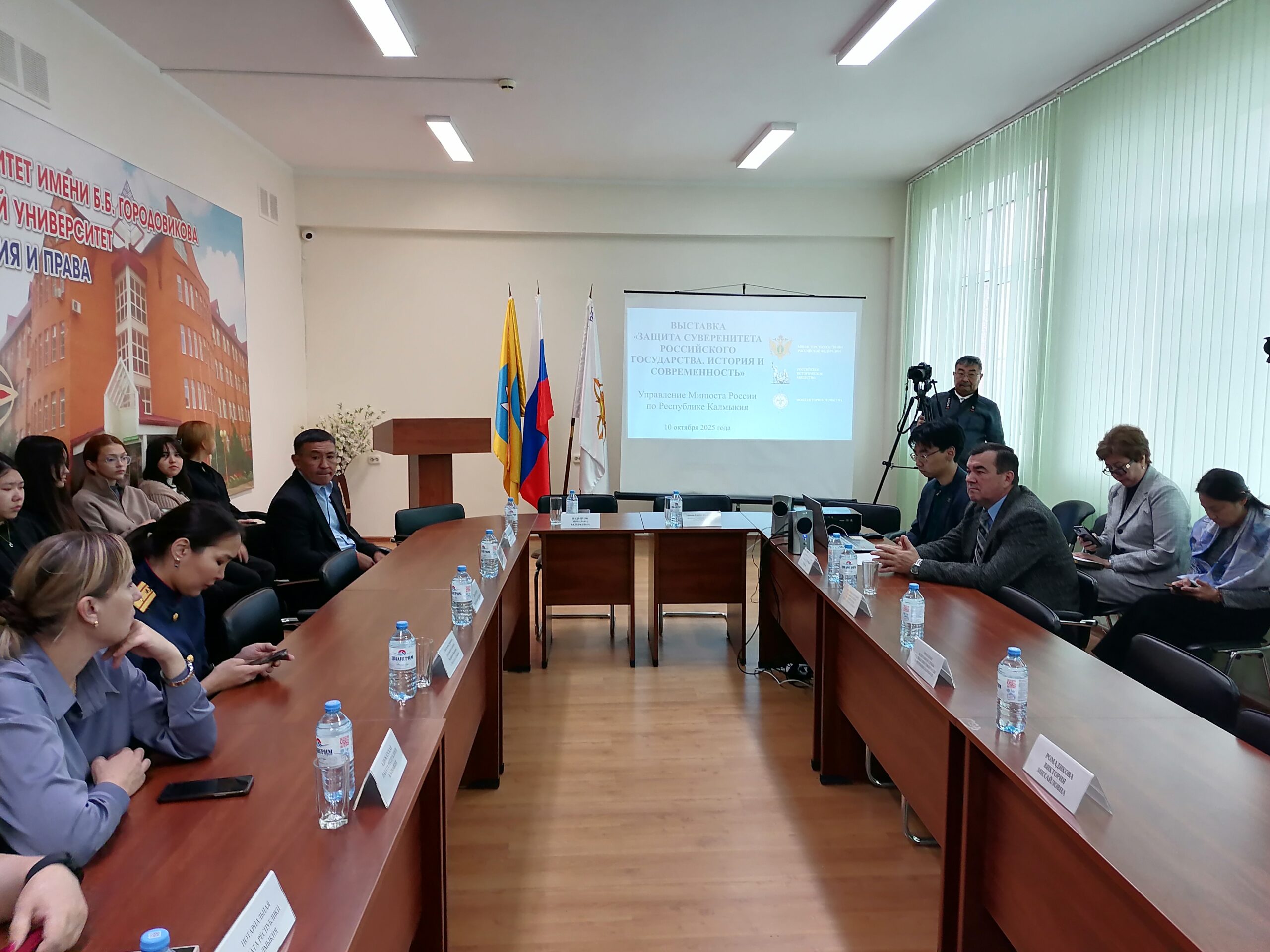 10 октября 2025 г. студенты КФ РГУ СоцТех – активисты Движения Первых вместе с советником по воспитанию и взаимодействию с детскими общественными объединениями Когаевой Н.М. посетили выставку «Защита суверенитета Российского государства. История и современность» в Калмыцком государственном университете имени Б.Б. Городовикова. В торжественном открытии приняли участие руководители федеральных и республиканских органов власти, судебных органов, министерств, ведомств и общественных организаций республики, а также преподаватели, студенты. Этот масштабный проект подготовлен Минюстом России, Российским историческим обществом, Госфильмофондом России и Фондом «История Отечества». Архивные материалы в ретроспективе показывают героическую многовековую историю борьбы России за свой государственный суверенитет. В своем выступлении начальник Управления Минюста России по Республике Калмыкия Канибек Ураимов отметил, что этот просветительский и образовательный проект сегодня особенно актуален для подрастающего поколения.