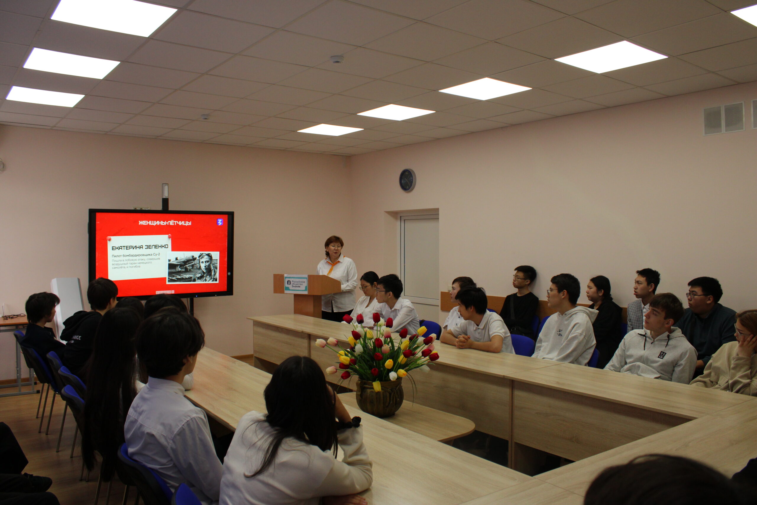 В канун прекрасного весеннего праздника, 5 марта 2026 года, в КФ РГУ СоцТех говорили о мужестве и силе духа. Советник директора по воспитанию, лектор Российского общества «Знание» Н.М. Когаева провела лекцию «Женщины на войне и в тылу» для студентов первого года обучения. Встреча стала данью уважения тем, кто ковал Великую Победу. Цифры, прозвучавшие в лекции, поражают: полмиллиона героинь ушли на фронт защищать свою землю. Н.М. Когаева рассказала первокурсникам о подвигах летчиц, снайперов, медсестер Великой Отечественной войны, чьи имена навечно вписаны в историю. 92 женщины получили звание Героя Советского Союза за свое бесстрашие. Особое внимание лектор уделила современности — героизму женщин в зоне специальной военной операции и их самоотверженному труду в тылу, подчеркнув, что и сегодня ни одна сфера не обходится без женской мудрости и созидательной энергии. Наш долг — сохранить память о тех женщинах, кто получил «Золотую Звезду», и о тех, чьи подвиги навсегда останутся неизвестными. Так герои обретают бессмертие. А для всех нас это будет постоянным напоминанием: женщина может всё!
