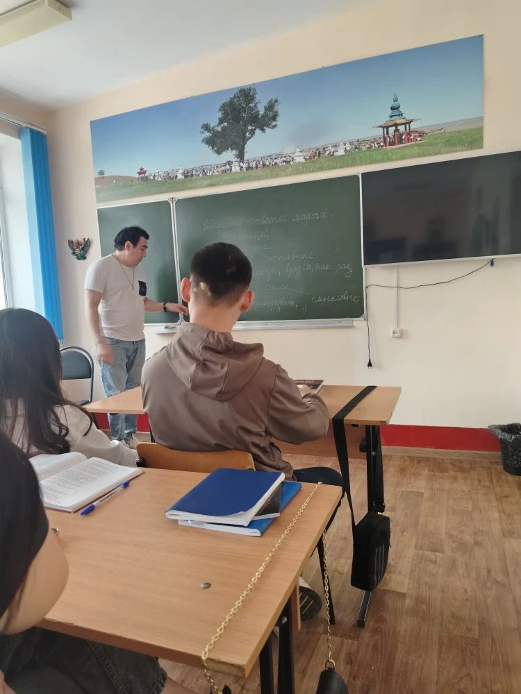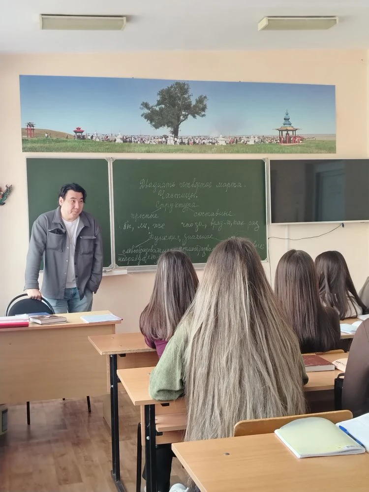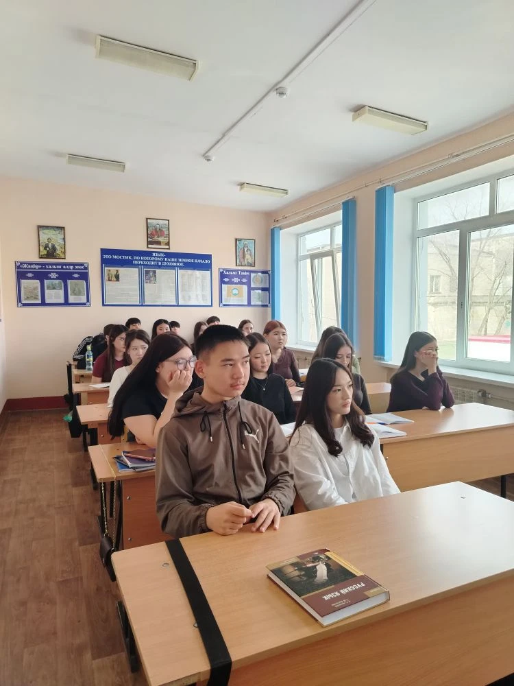 В преддверии празднования Всемирного дня театра 24 марта 2026 года студенты гр. Ю-1А и Ю-1Б специальности «Юриспруденция» (кл. рук. Басанова Д.В., Будыльская Н.В.) встретились с актёром Национального драматического театра им. Б. Басангова Очиром Эрднеевым. Гость рассказал студентам о специфике закулисной жизни, личном пути в профессию и вызовах, с которыми сталкивается артист на сцене. Особое внимание Очир Борисович уделил феномену театра как искусству «живого» общения со зрителем. Молодые люди с интересом узнали о процессе создания спектаклей, театральных гастролях и о том, как рождается магия сцены — от первых репетиций до финальных аплодисментов.