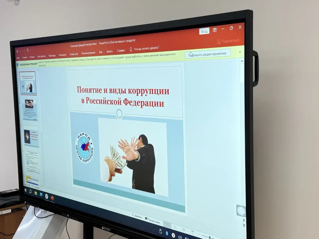 Открыл мероприятие директор филиала, д.э.н, Пашнанов Э.Л., обратив внимание на проблему коррупции в обществе и меры борьбы с ней. Присутствующие гости — заместитель руководителя Управления по противодействию коррупции при Главе РК Чурюмов А.А., заместитель начальника отдела по надзору за исполнением законодательства о противодействии коррупции Прокуратуры РК Санджигоряев К.В., заместитель начальника Управления Министерства юстиции по РК Набиуллин Р.Т., начальник отдела профилактики коррупционных правонарушений и правовой работы Управления по противодействию коррупции при Главе РК Шургучиева В.С. — акцентировали внимание на повышение правовой грамотности в сфере антикоррупционного законодательства и формирование у антикоррупционного мировоззрения у молодежи. Участники проанализированы изменения антикоррупционного законодательства, обменялись опытом по противодействию коррупционным проявлениям, а также предложили некоторые меры по совершенствованию профилактической работы, предупреждению, пресечению и противодействию коррупционным правонарушениям.