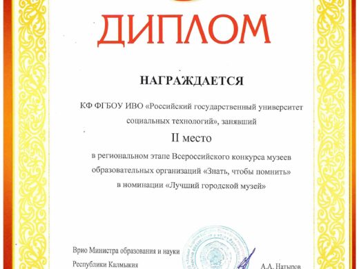 15 мая 2025 года подведены итоги регионального этапа Всероссийского конкурса школьных музеев «Знать, чтобы помнить», где участники представили уникальные истории своих героев времен Великой Отечественной войны и мирного труда. Цель конкурса — сохранение исторической памяти и патриотическое воспитание молодёжи. Студенты КФ PГУ СоцТех достойно представили свое учебное заведение, заняв призовые места. 2 место — Кайлакаев В. (гр. ОИ-1А) представил видеоролик о своем прадедушке Сельгикове Михаиле Арыковиче, Герое Советского Союза, участнике партизанского движения в Брянской области; 3 место — Санжиров Д. (гр. ПС-2) рассказал о боевом пути своего прадедушки Санджирова Н.М., за подвиги при форсировании Днепра Николаю Мартыновичу было присвоено звание Героя Советского Союза. В номинации «Лучший городской музей» 2 место занял Баранов Э., студент группы ОИ-3Б. Поздравляем победителей!