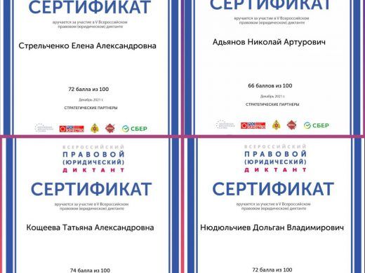 Задания диктанта, несомненно, добавили участникам мотивации для дальнейшего углубленного изучения права, знание которого является неотъемлемой составляющей современного образованного человека!