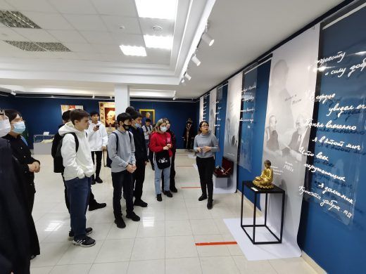 15 марта 2022 года в рамках Декады ПЦК общих гуманитарных и профессиональных дисциплин и модулей студенты КФ МГГЭУ — члены историко-патриотического клуба «Глобус» посетили выставку Национального музея Республики Калмыкия им. Н.Н. Пальмова «Я в мир пришел творить», посвященную 100-летию со дня рождения Народного поэта Калмыкии, Героя Социалистического Труда, Лауреата Государственной премии СССР, депутата Верховного Совета Калмыцкой АССР Давида Никитича Кугультинова. Старший научный сотрудник музея Цагадинова Э.Б. рассказала о жизни и творчестве Народного поэта, показала личные вещи Давида Никитича. Особый интерес у ребят вызвали текст стихотворения «От правды я не отрекался» на родном языке и довоенное издание «Калмыцкий народный эпос «Джангар» 1940 г.
